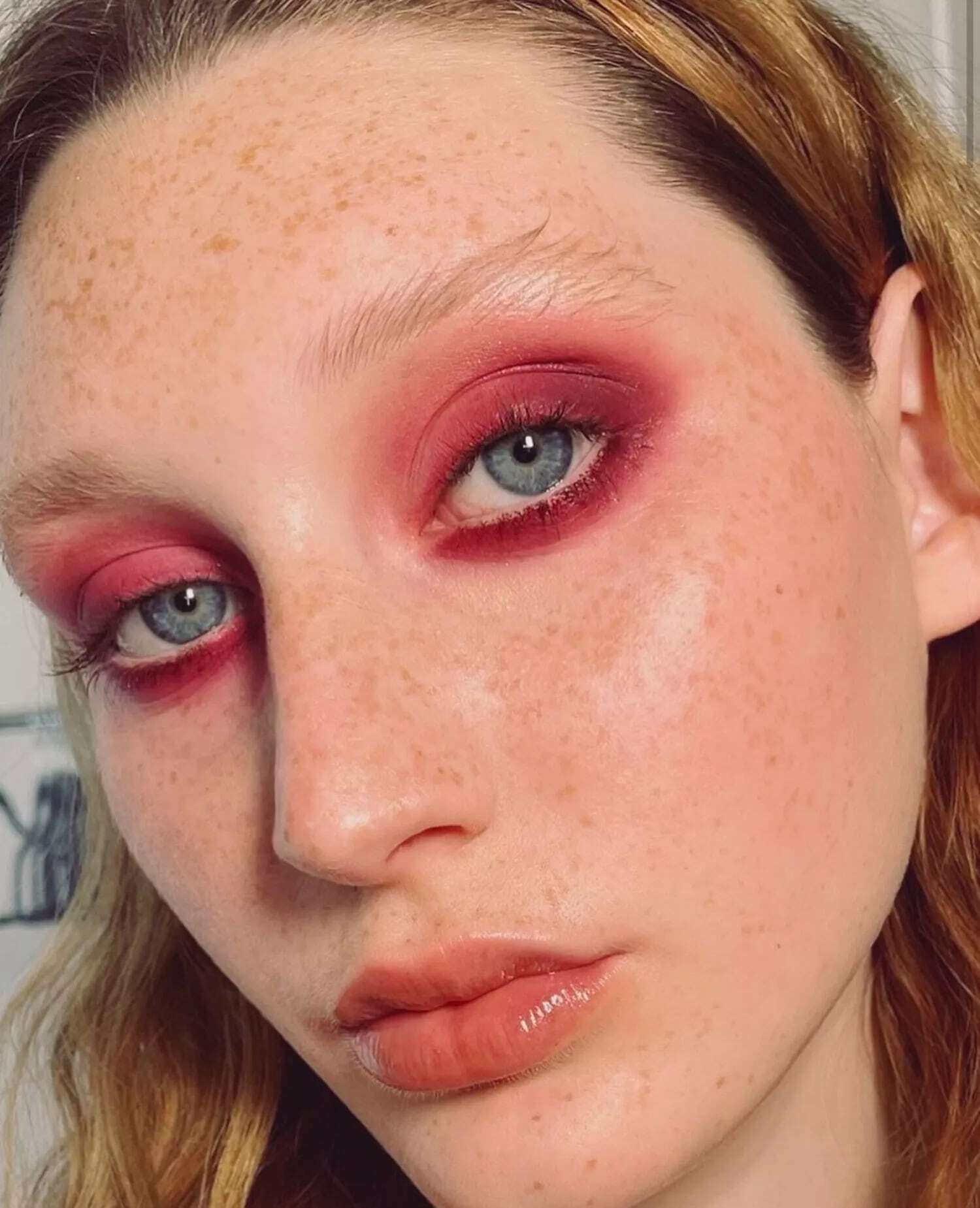 Вместо привычных чёрно-коричневых теней сделайте красный смоки. Он красиво подчёркивает голубые, зелёные и карие глаза.